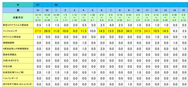 【毎週更新】感染症情報【柏崎】柏崎地域の感染症発生動向(感染症発生動向調査の定点報告から)