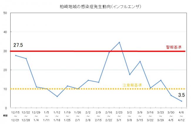 このことにより柏崎地域の定点医療機関から報告された主な感染症の最近の発生動向を御紹介します。