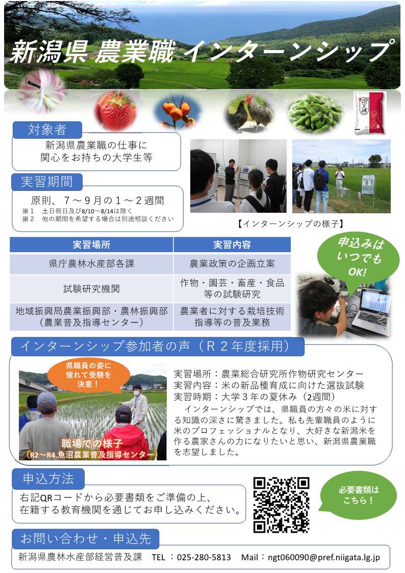 新潟県 令和8年度農業職インターンシップチラシ [その他のファイル/154KB]
