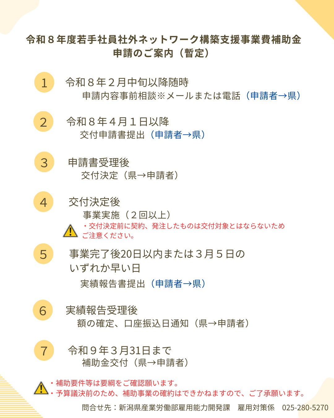 🆕令和8年度補助金申請受付スケジュールのご案内 [その他のファイル/239KB]