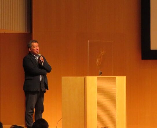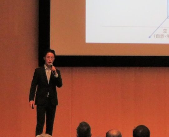 第2部では、記念講演として株式会社日本政策投資銀行新潟支店の細川吉明氏より、「『佐渡島の金山』世界文化遺産登録を契機とした地域価値の向上~持続可能な佐渡市の実現~」」と題して講演いただきました。細川様からは、先行して世界遺産に登録された地域の事例をご紹介いただきながら、佐渡の歴史文化や自然等の強みを活かし、住民・民間・行政で連携協働して心の豊かさと物質的な豊かさを持続的に高め合っていく方策についてお示しいただきました。
