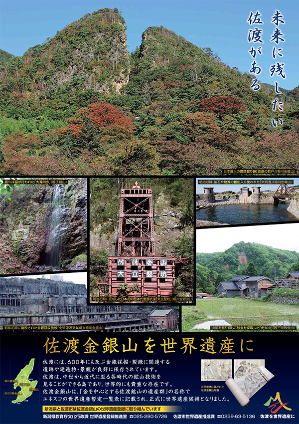 世界遺産登録を目指す佐渡金銀山世界遺産登録啓発ポスターデータです。
