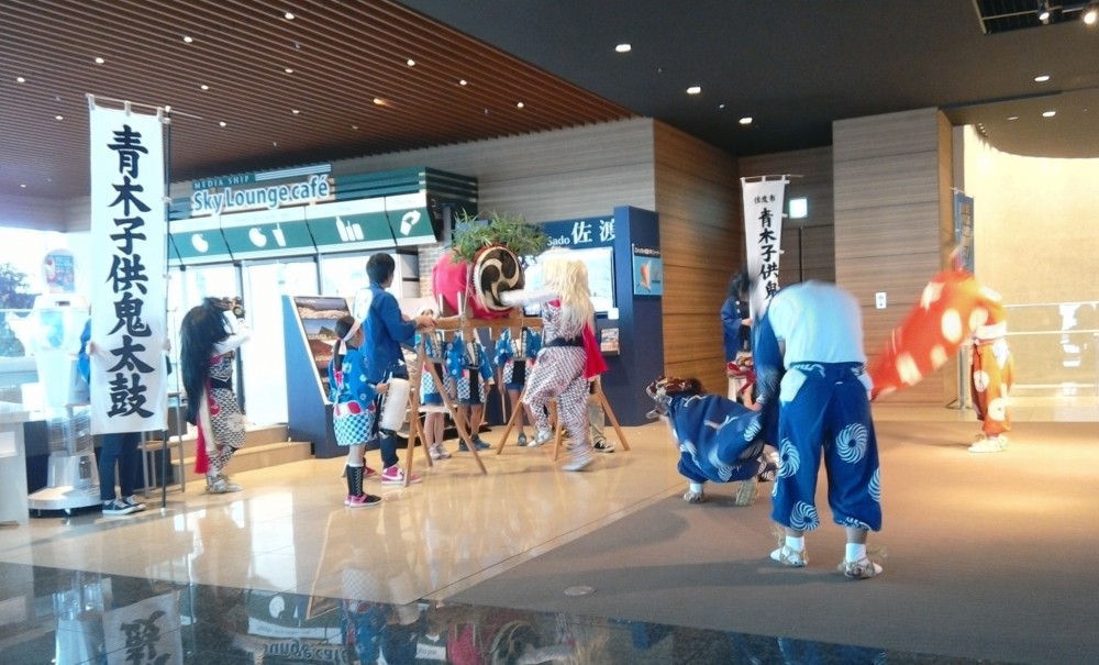 最後に、青木子供鬼太鼓のみなさんにより、佐渡の郷土芸能である鬼太鼓が披露され、会場は大いに盛り上がりました。