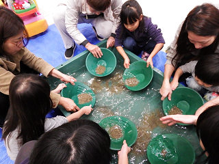また、来場された家族連れの方など、多くの皆様に「金塊つかみ」や「砂金採り」の体験をしていただきました。(平成24年以降毎年実施)
