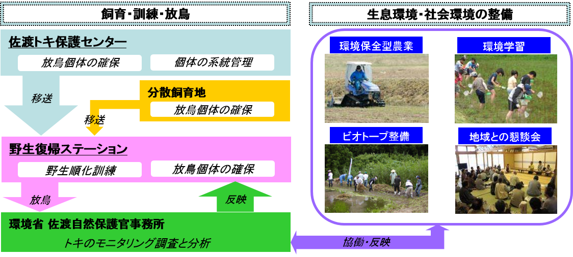 ◇「トキ保護増殖事業計画(H16環境省ほか)」に沿い、環境省、新潟県等が一体となって進めるプロジェクトで、生物多様性の保全・再生の先駆事例として、高く評価されています。